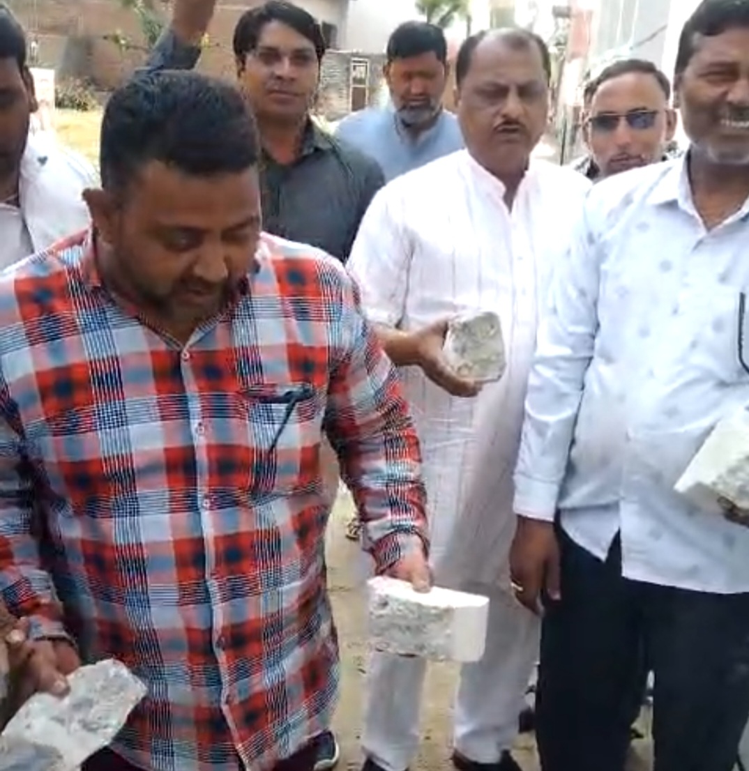 : इंटरलॉकिंग व नाली निर्माण में घटिया सामग्री के प्रयोग से नाराज सभासदो ने हंगामा काट रुकवाया निर्माण कार्य