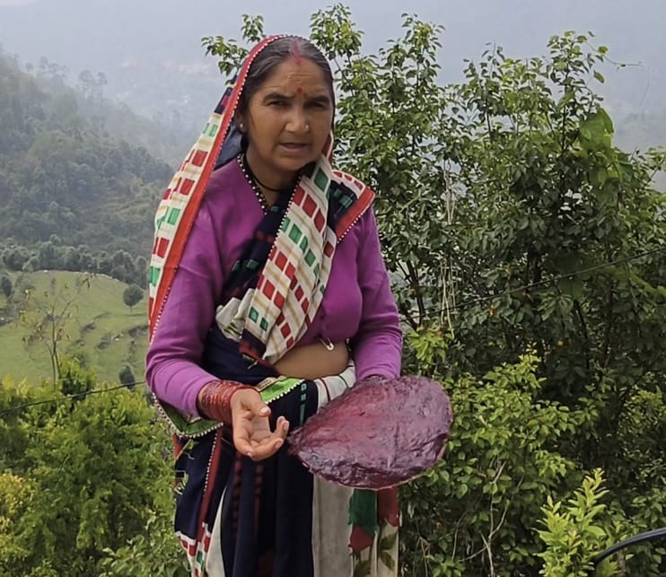 फोटो- ताजे फलों को दिखाई शिवराज सिंह बोहरा व इन फलों से बनाई गई रोटी दिखाती उनकी पत्नी उर्मिला।
